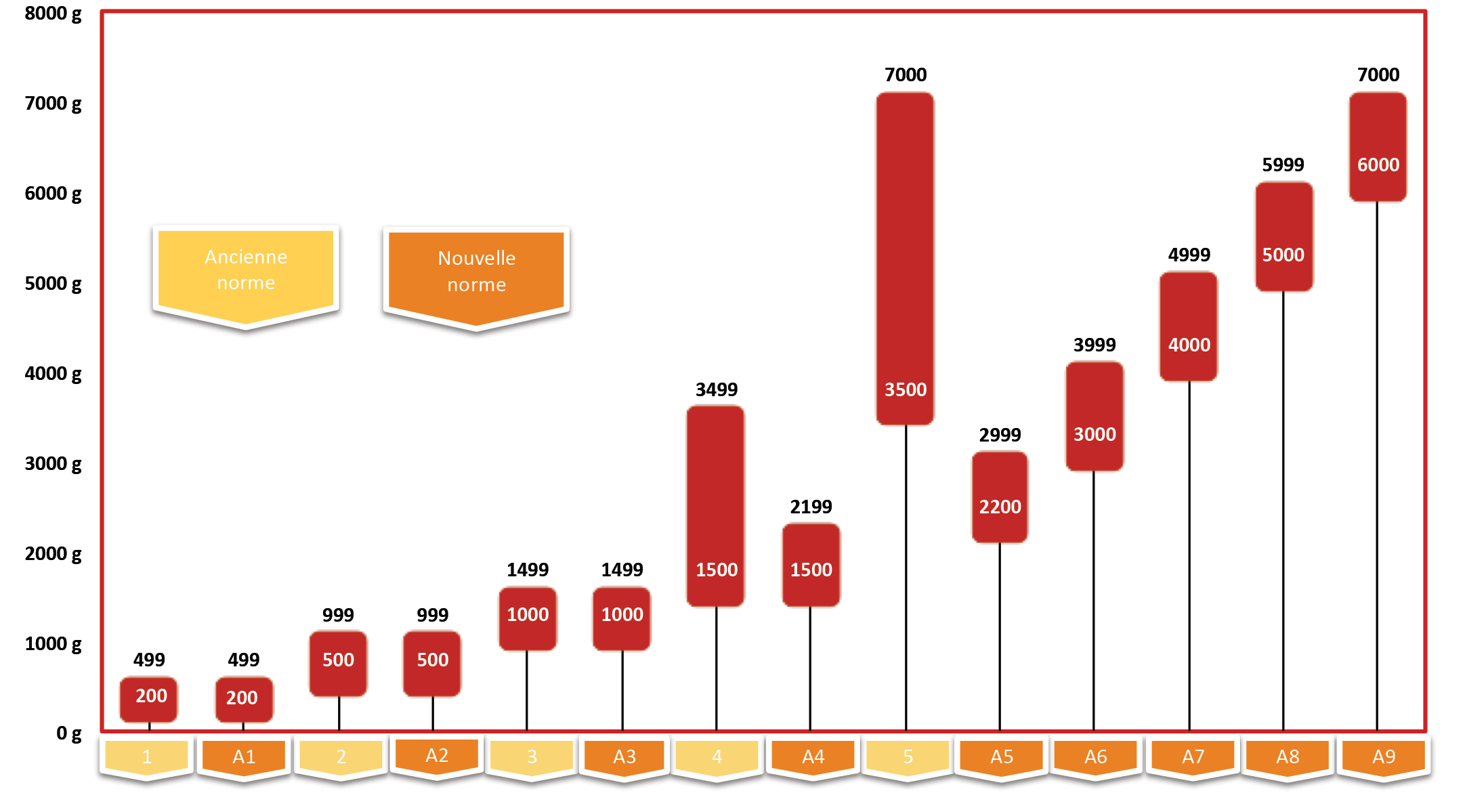 | Niveau de coupe | Poids (g) requis pour couper avec une coursé de lame de 1" (25 mm) | Index de coupe moyen (10 mesures) |